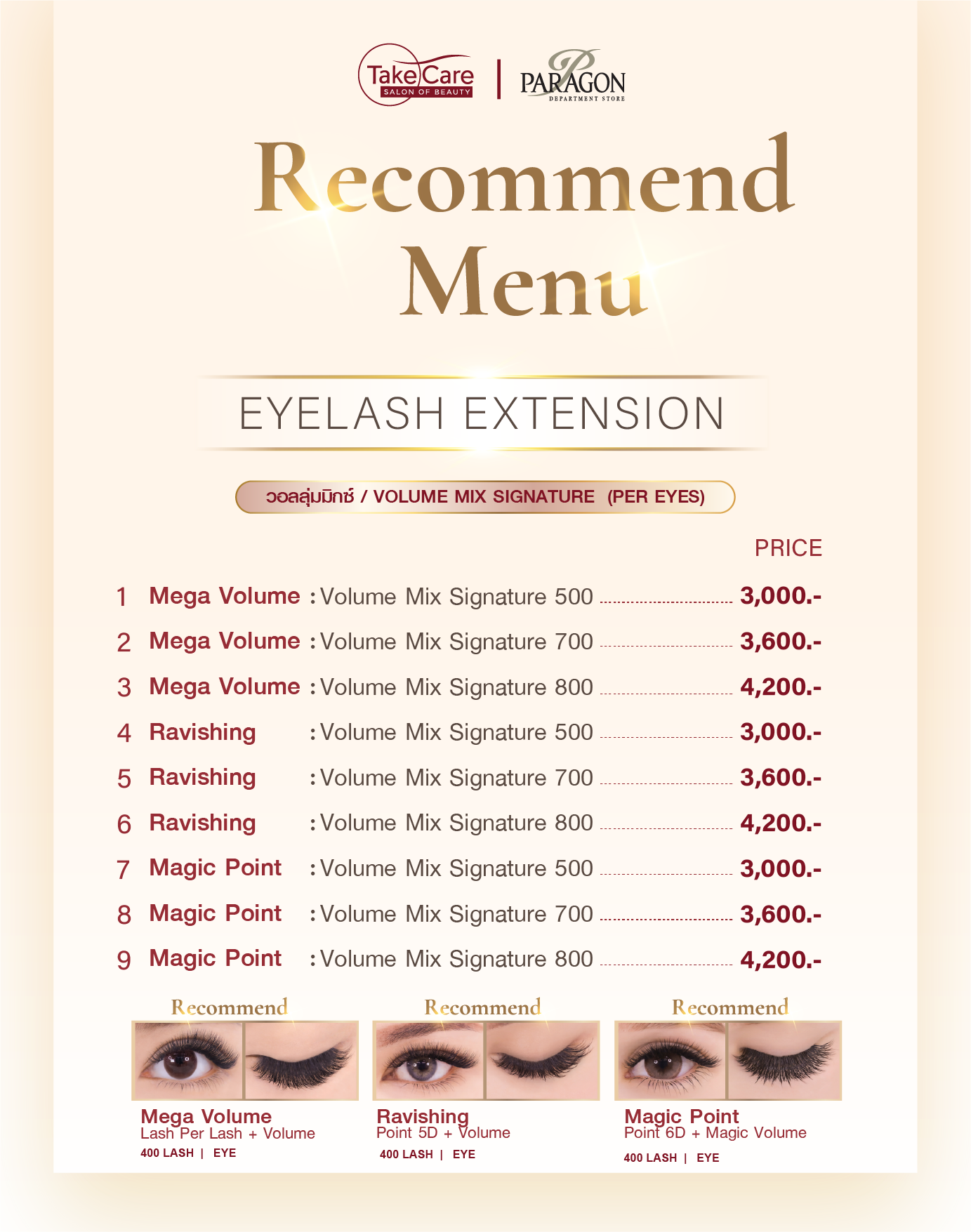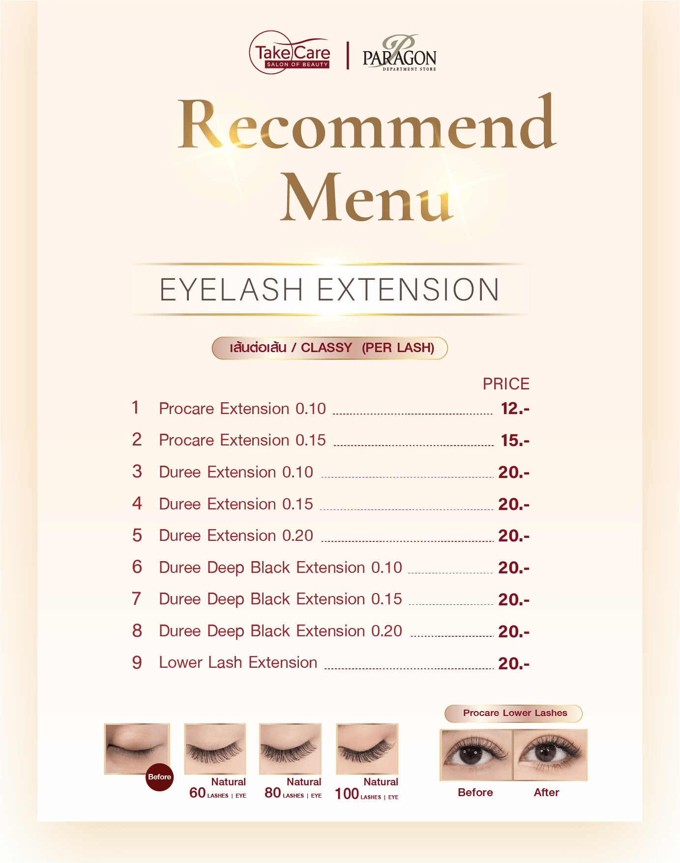 ต่อขนตาร้าน Take CareSalon of Beauty สาขาสยามพารากอน Tel. 02-6107771