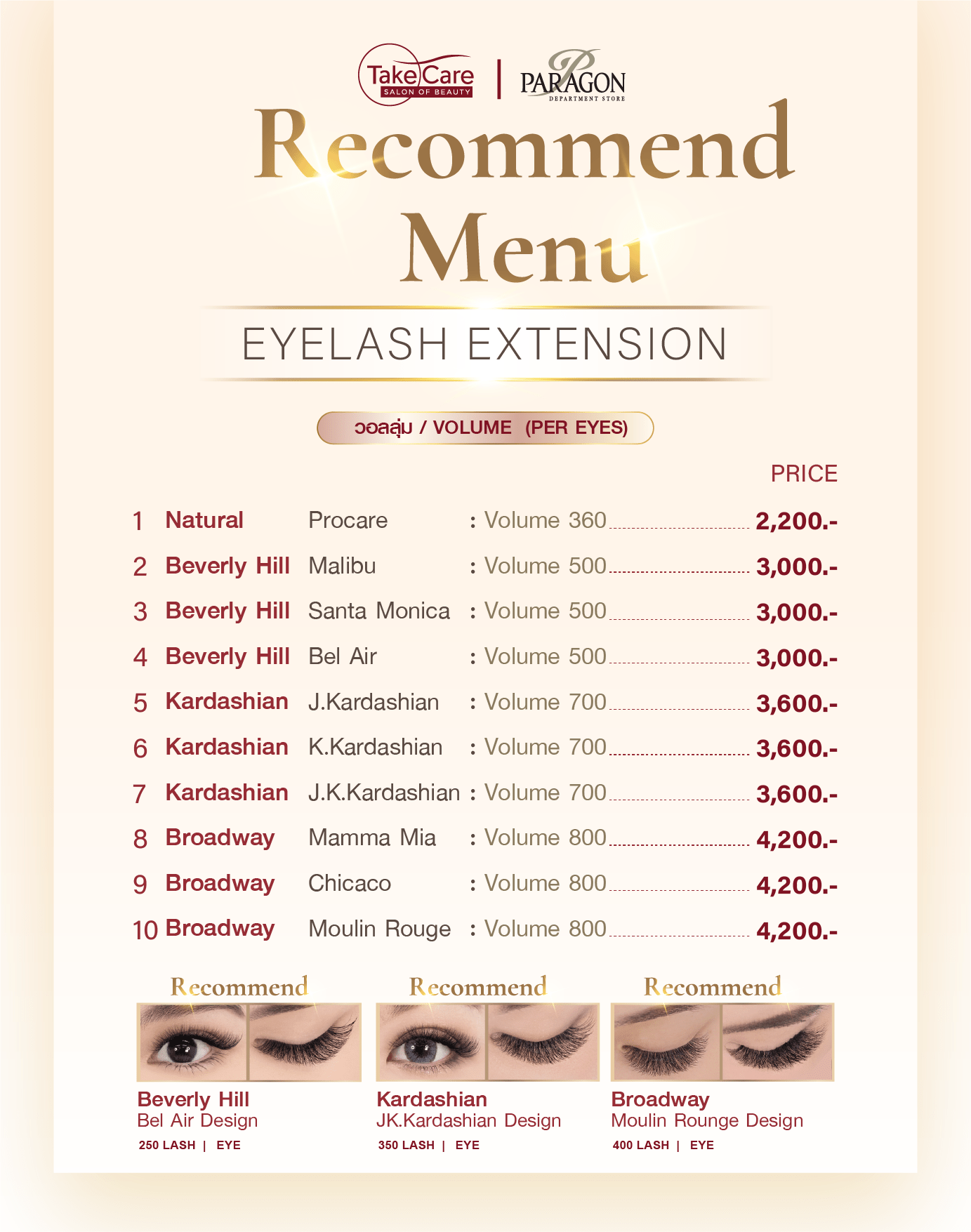 ราคาต่อขนตาวอลลุ่มเริ่มต้น 3,200 – 4,200.-