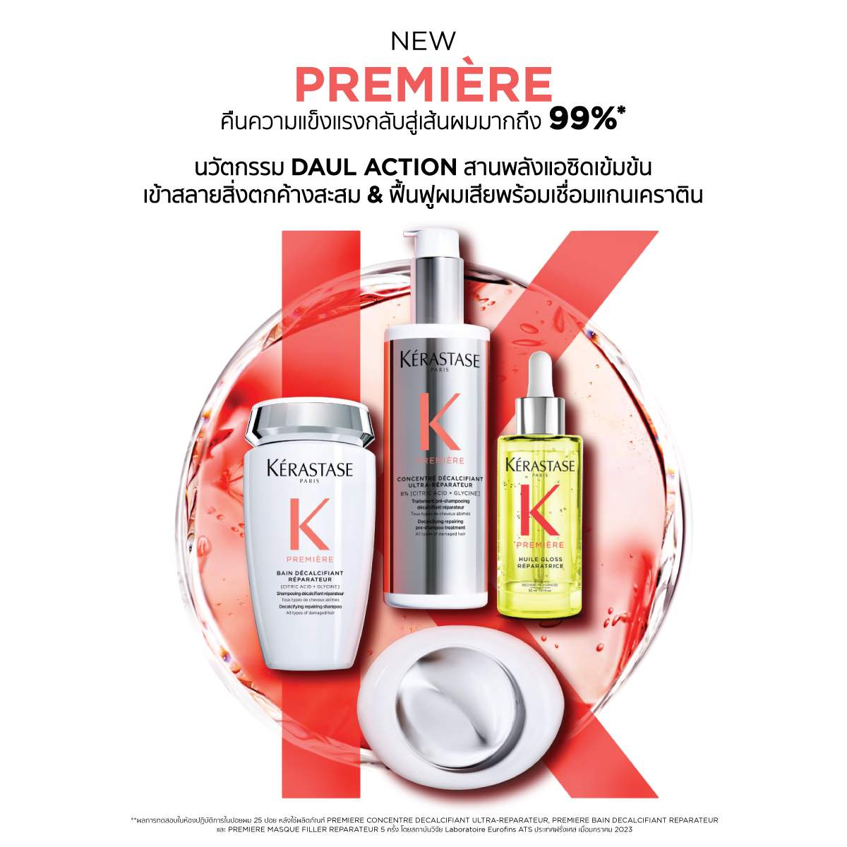 เส้นผมอ่อนแอ ขาดง่าย และไม่มีน้ำหนัก: Premiere Hair Treatment ช่วยเสริมสร้างโครงสร้างภายในของเส้นผม ทำให้ผมแข็งแรงขึ้นและลดการขาดหลุดร่วง