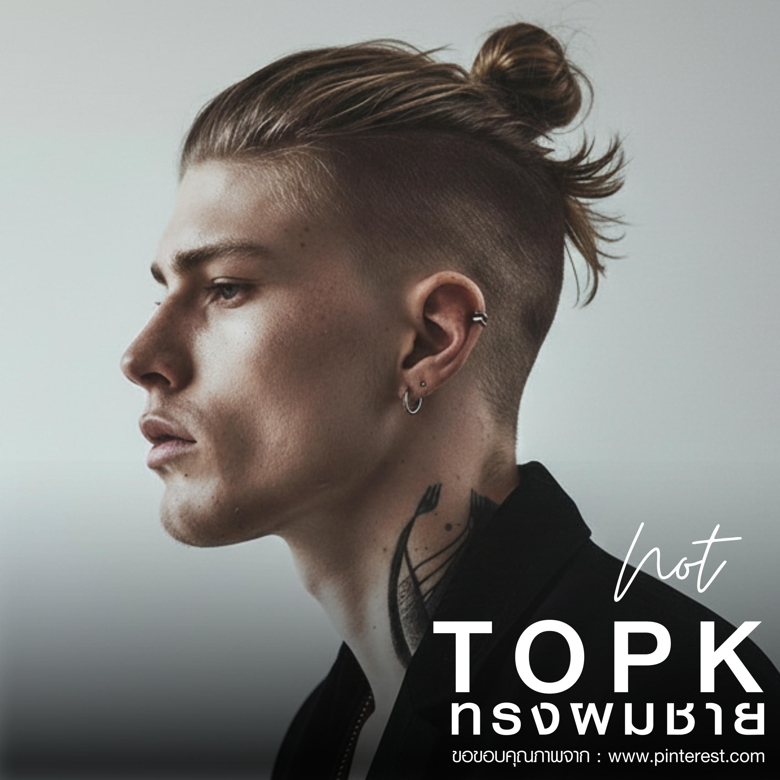 Man Bun/Top Knot รวบผมทั้งหมดหรือส่วนบนให้เป็นจุก/มวยผม (หรือหวีส่วนอื่นให้เป็นจุกเล็กๆ) แสดงถึงความเท่แบบฮิปสเตอร์ คนที่มีผมยาวถึงกลางหลังขึ้นไป ต้องการลุคแฟชั่น ทรงผมนี้ช่วยให้ได้ลุคแนวสตรีททันสมัย