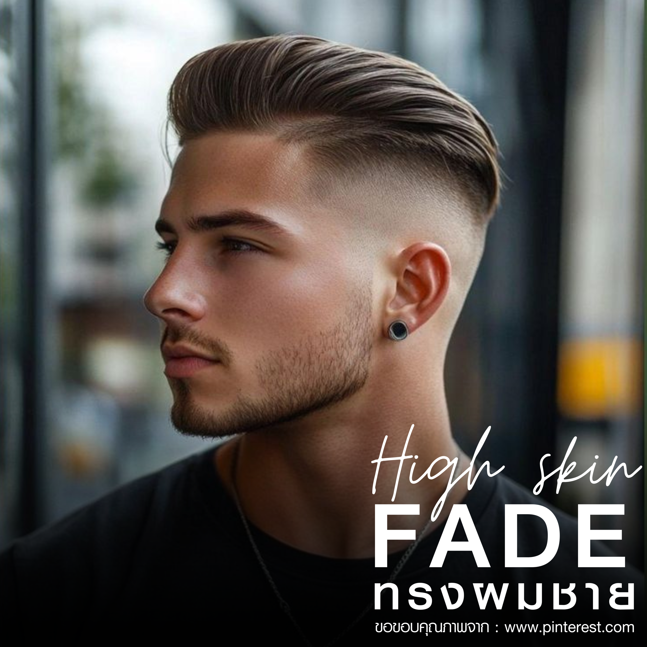 Skin/Bald Fade เฟดถึงขั้นติดหนังศีรษะ มี contrast สูง ให้ลุคสะอาด แต่ฉาบความเท่ที่โดดเด่น คนที่ต้องการลุคโมเดิร์นที่คมชัด ต้องการเน้นรูปหน้า (เหมาะกับใบหน้าทุกรูปทรงที่ต้องการความโฉบเฉี่ยว)