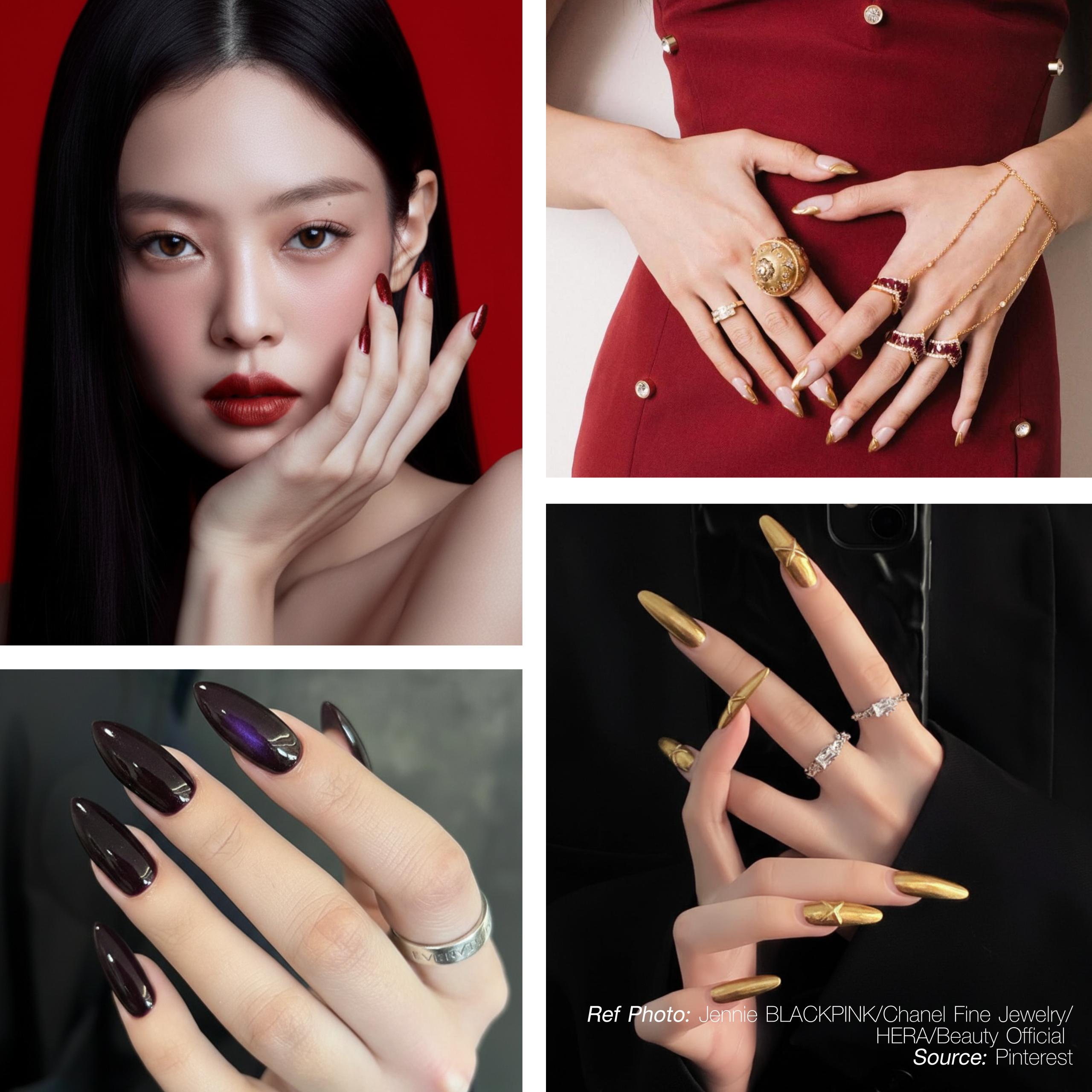 สไตล์เล็บแนะนำ: Dark luxury / Burgundy + gold ลึก เท่ และทรงพลัง