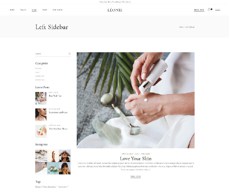 Choose one of the many blog single options Léonie offers & make engaging posts for readers.