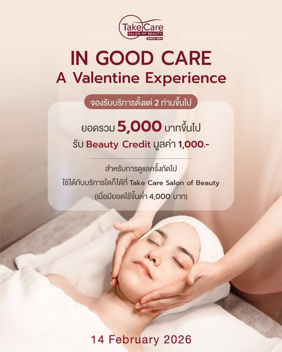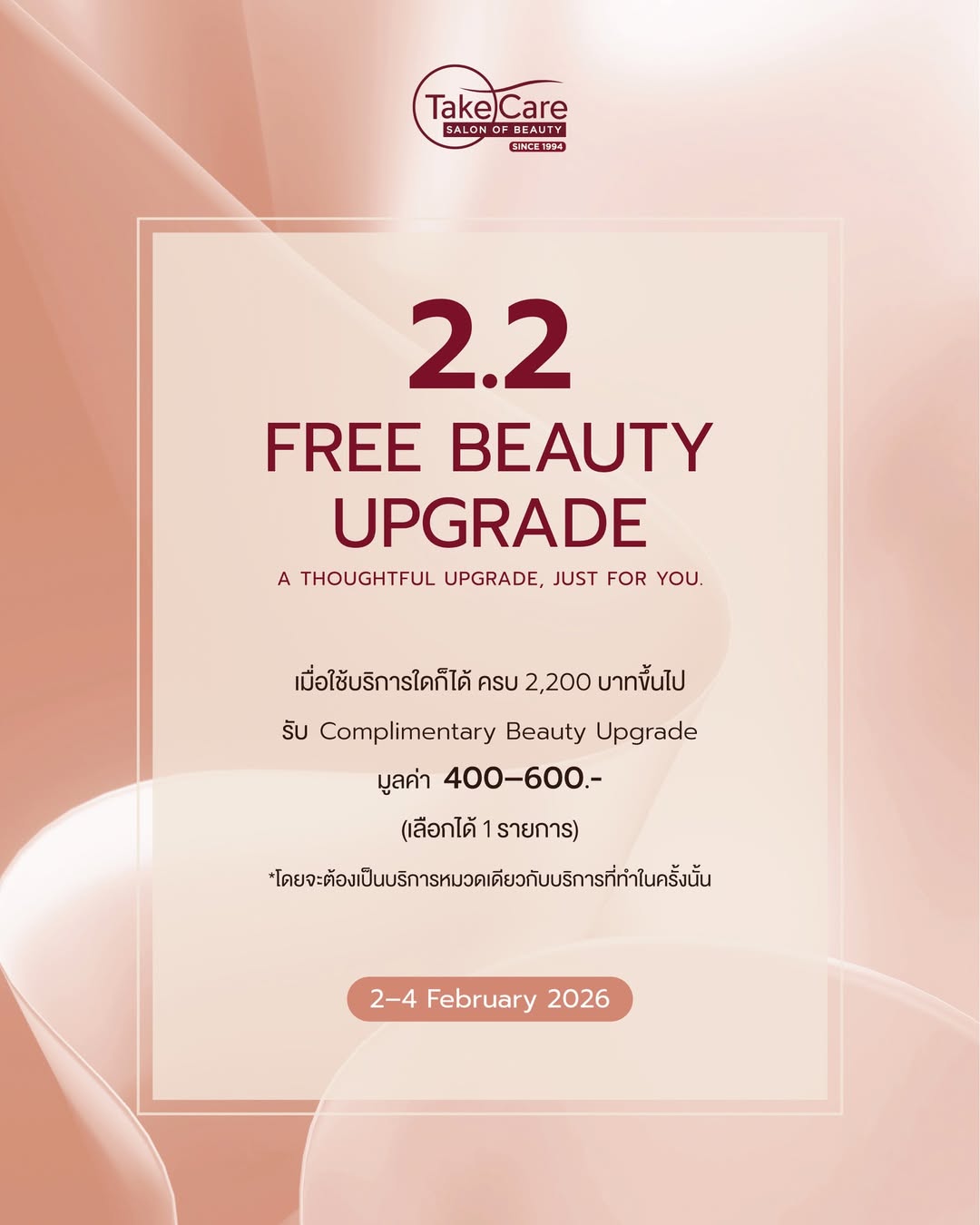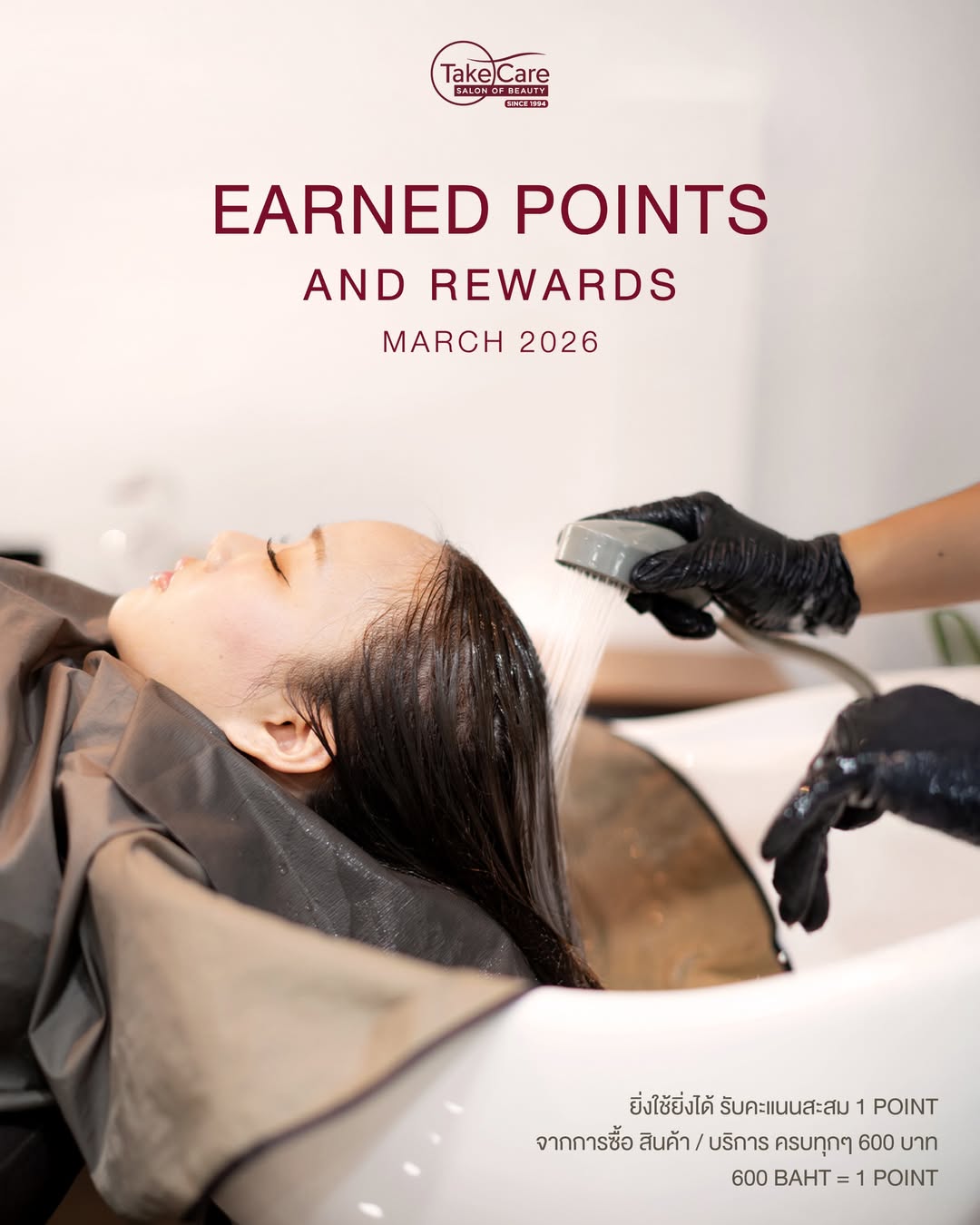 Since 1994, Take Care Salon of Beauty has been a trusted destination for refined beauty services in Bangkok. "Begin your beauty experience with us."